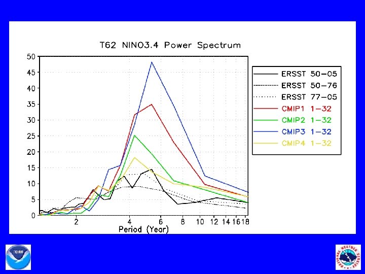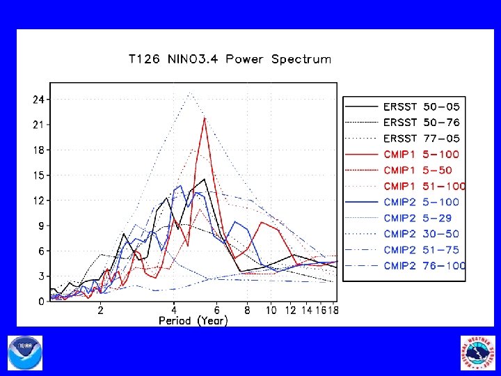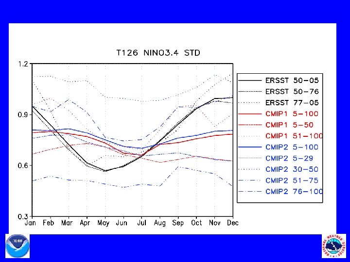 Summary • Interannual Coupling Strength of T 62 and T 126 are both weaker than that of observation, but they are compensated by their stronger Thermocline Coupling Strength. • Interannual Coupling Strength of T 126 is weaker than that of T 62 in Nov-Feb, probably due to its confined rain band to the far western Pacific and delayed eastern Pacific warming. • T 126 is more stable than T 62, and its onset of ENSO is more irregular than that of T 62, suggesting that the system is near neutral and atmospheric stochastic forcings could play significant roles on its ENSO evolution. • Decadal modulations of ENSO are related to background state changes – cool in the western Pacific, warm in the eastern Pacific, westerly anom. near the dateline, deep thermocline in the eastern Pacific and shallow thermocline in the western Pacific favor strong ENSO variability.