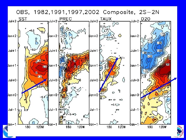 late onset 4 warm events early onset: > 0. 5 o. C Yr 0 normal onset (4): Mar+0 – May+0 late onset (1): Aug 2 year peaks 12 warm events normal onset (12): early onset Dec-1 – Apr+0 late onset (3): Jul+0 – Sep+0 late onset early onset (4): Sep-1 – Nov-1 early onset