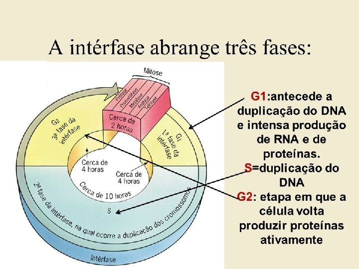 Ciclo Celular • O ciclo celular : processos que ocorrem desde a formação de uma célula até sua própria divisão em duas filhas, tendo natureza cíclica. A célula se divide originando duas descendentes, com divisão do núcleo (mitose ) e divisão do citoplasma (citocinese). A etapa seguinte, é compreendida no espaço entre duas divisões celulares sucessivas e foi denominada de interfase. http: //www. cellsalive. com/cell_cycle. htm