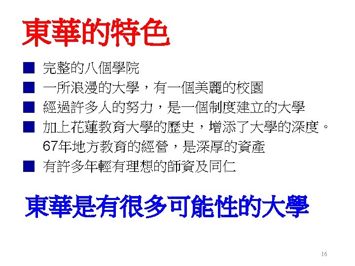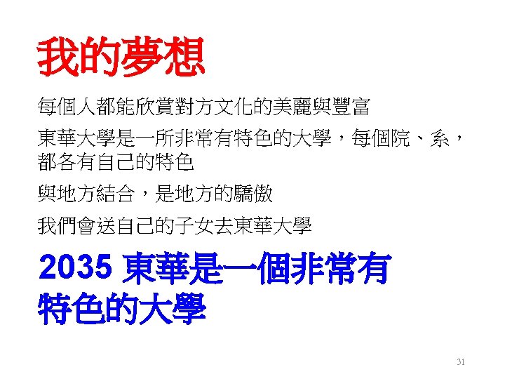 創造興奮與希望的 東華大學 NDHU 2035 鄭嘉良 Chia-Liang Cheng, National Dong Hwa University 2015 國立東華大學校長遴選 Oct 13, 2015 1