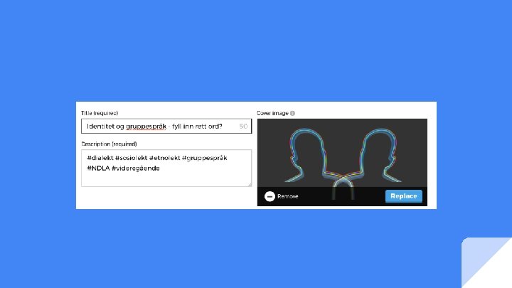 Hvordan lage den perfekte quiz? ● Du gjør ikke det - du øver, deler og lager forbedringer sammen med andre ● Bygg, bruk og bedre ● knutinge@ndla. no ● Emneknagger: NDLA, fag, videregående, Moldequiz ● God tittel og beskivelse