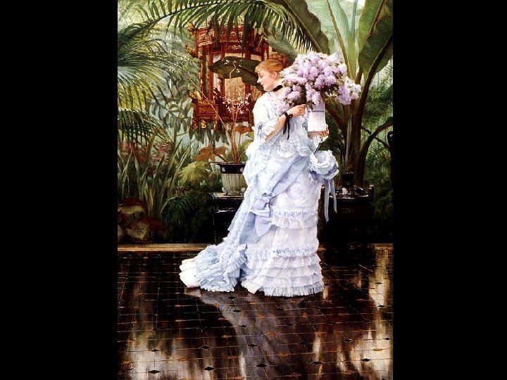 Né à Nantes en 1836, Tissot, marié à une anglaise (1871 -82) vit à Londres : un immense succès…Il subit des influences opposées d'où une œuvre hétérogène. En 1859, en Belgique, il découvrit les 'pré-rubénistes' qui marquèrent profondément ses tableaux toujours empreints d’une certaine pédanterie historique : allégories et scènes de genre aux personnages vêtus de costumes anciens. Degas, son ami intime, lui demande de participer à la première exposition impressionniste en 1874 il refuse bien que très concerné. Tissot fut le célèbre portraitiste de la société élégante anglaise. Soudain religieux, en 1886, il effectua plusieurs voyages en Palestine en vue de l’illustration de la Vie du Christ (1896), puis de la Sainte Bible. Il laissa en outre une œuvre importante de graveur (plus de 90 planches). . . Il décora aussi la Chapelle des Dominicains du faubourg Saint-Honoré. Un grand nombre de ses tableaux se trouvent dans les musées anglais. Il meurt en 1902.
