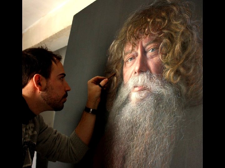 Belloso Adorna Ruben, cet artiste espagnol né à Séville en 1986, obtient une renommée internationale grâce à ses portraits d’un réalisme époustouflant. Pendant plusieurs années il étudia l’art à l’université de Séville et actuellement il lui arrive de vendre certaines de ses créations sur les trottoirs de la ville. Il crée des portraits de grandes dimensions avec des bâtonnets gras de pastel, une technique artistique inventée en France et en Italie à la fin du XVe siècle qui a fini par tomber en désuétude. Ses tableaux hyper réalistes, confondants de vérité, donnent l'impression que les personnages ont été photographiés ! Ruben Belloso Adorna s’est même vu qualifier par certains de : génie artistique du XXIe siècle après avoir participé à de nombreuses expositions "en solo" et remporté plusieurs prix pour ses œuvres exceptionnelles.