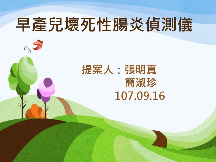 NEC症狀 • 初期包括餵養不耐受(feeding intolerance)、 胃殘留物增多(increased gastric residuals)、 腹脹(abdominal distension)、便血 (bloody stools)。 • 症狀可迅速惡化,引起腸穿孔(intestinal perforation)、腹膜炎(and peritonitis)。