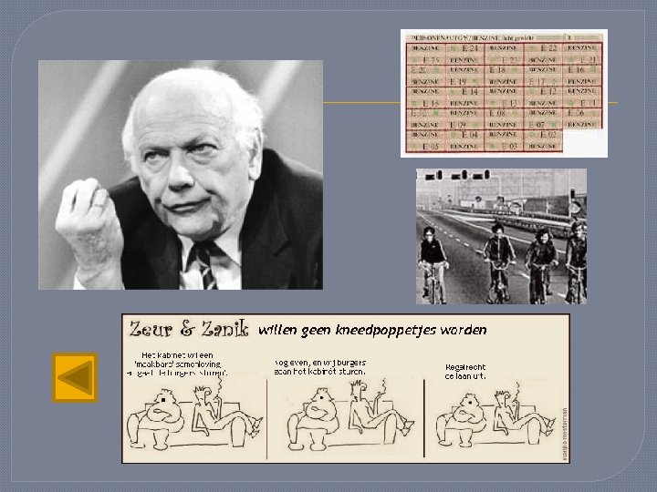 vervolg Er kwam weinig terecht van deze plannen -door de oliecrisis was er te weinig geld -ruzies binnen het kabinet -tegenstand in de samenleving Den Uyl moest al snel gaan bezuinigen In 1975 oprichting van de RPF (conservatieve christenen-EO mensen) In 1977 won Den Uyl de verkiezingen, maar verloor de formatie→ Confessionelen en de VVD regeren weer