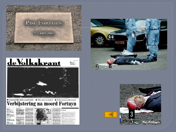 Jaren na 2000 In 2000 opkomst van Pim Fortuyn (eerst bij Leefbaar Nederland) -keert zich tegen paars (boek: ”De puin hopen van 8 jaar paars”) -keert zich tegen de onveiligheid -keert zich tegen bureaucratie -keert zich tegen de allochtonen In 2002 wordt Fortuyn vermoord Zijn partij (LPF) boekt grote verkiezingsoverwinning (26 zetels)→in de regering
