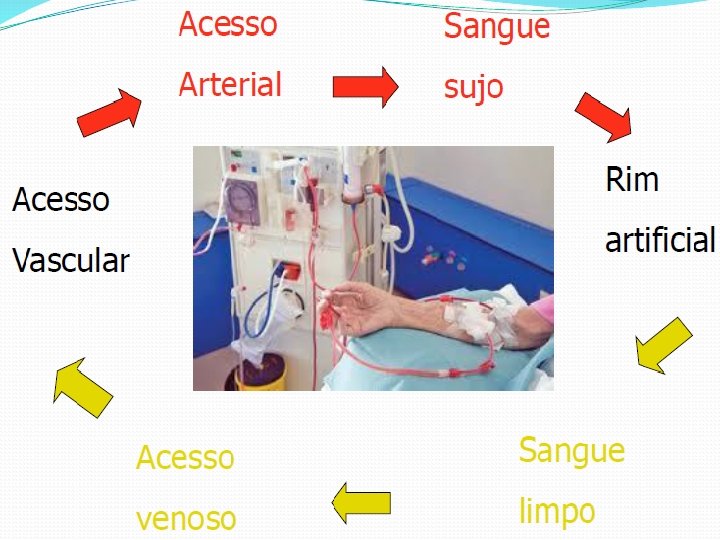 Materiais Necessários Via de acesso vascular; Máquinas de hemodiálise; Água tratada; Solução de diálise dialisato; Dialisador Capilar filtro; Anticoagulante heparinização • Hemodialise