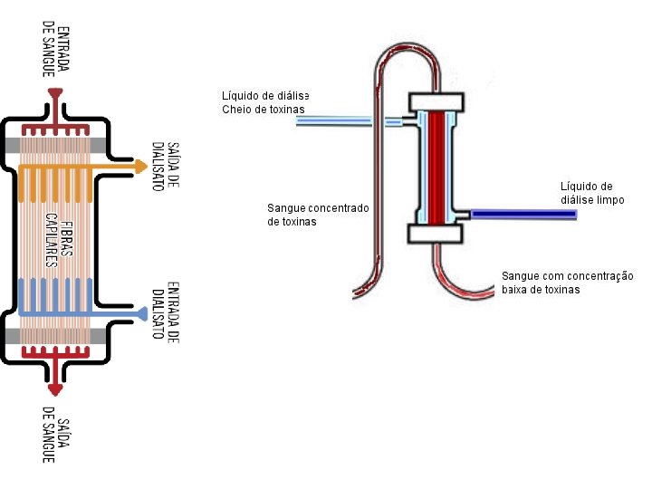 Diálise • É o processo físico-químico pelo qual duas soluções, separadas por uma membrana semipermeável, influenciam na composição uma da outra.