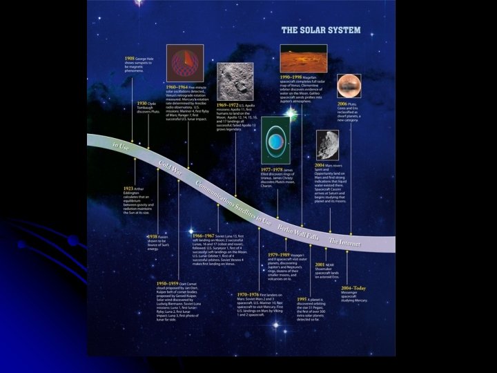 In this chapter you will discover… l l l l l how the solar system formed why the environment of the early solar system was much more violent than it is today how astronomers define the various types of objects in the solar system the relationships between planets, dwarf planets, small solar system bodies, and other classifications of objects in the solar system how the planets are grouped as they are how the moons formed throughout the solar system what the debris of the solar system is made of that disks of gas and dust, as well as planets, have been observed around a growing number of stars that newly forming stars and planetary systems are being discovered every year