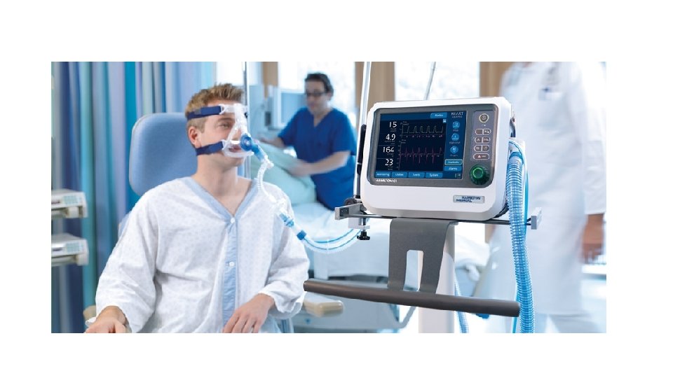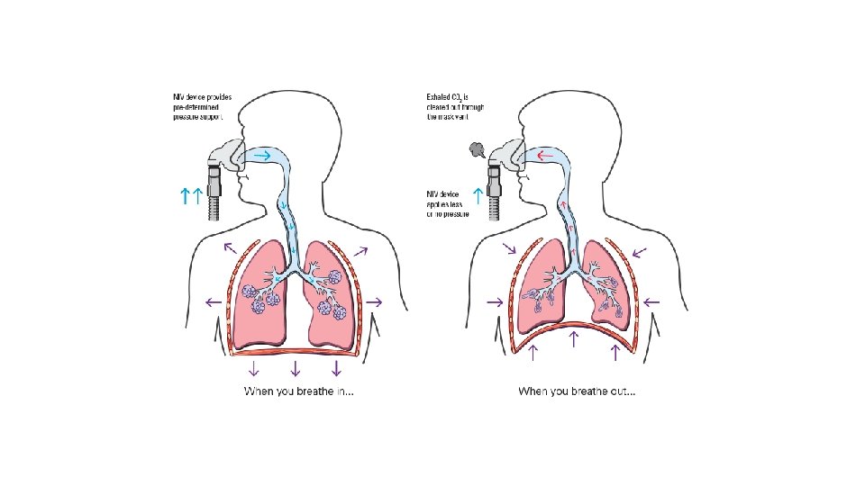 NIV - definice • aplikace ventilační podpory bez použití invazivního zajištění DC bez ETK či TSK • může být použita ke zvládnutí akutního i chronického respiračního selhání • aplikace v intenzivní péči i domácí ventilační péči