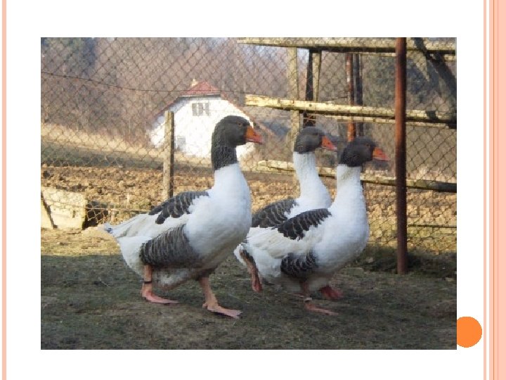 HUSA POMOŘANSKÁ Byla vyšlechtěna v Německu. Je věršího tělesného rámce s mohutným a širokým trupem. Chová se ve třech barevných rázech – divoká, bílá a strakatá. Je to plemeno rychlého růstu, vhodné do výkrmu, nenáročné dobře využívající pastvu. Vyniká vysokou jatečnou výtěžností a kvalitním peřím. Snáška 20 -30 vajec.