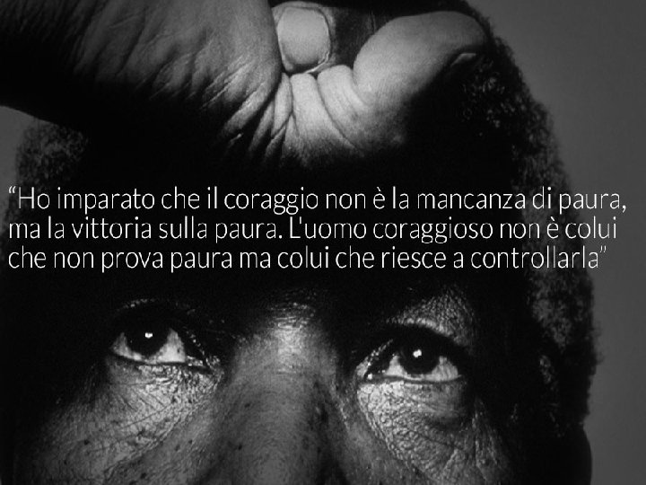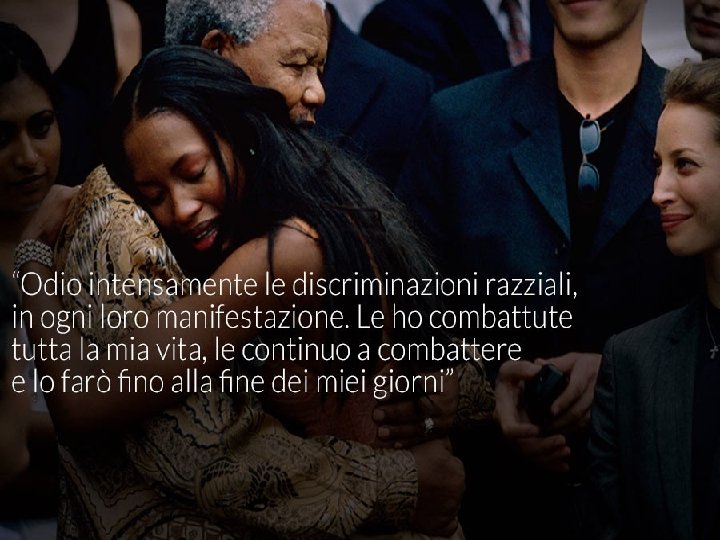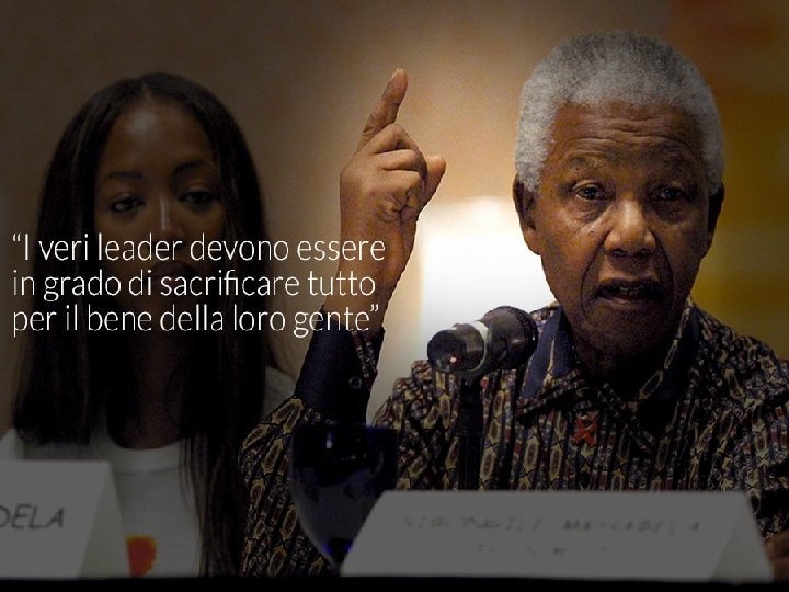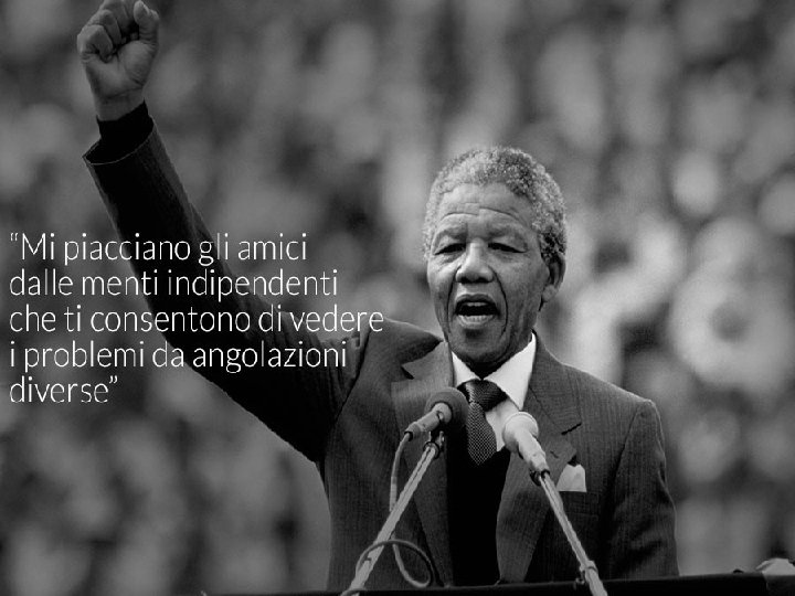 Nelson Rolihlahla Mandela(Mvezo, 18 luglio 1918 -Johannesburg, 5 dicembre 2013)è stato un politico sudafricano, primo presidente ad essere eletto dopo la fine dell’apartheid nel suo Paese e premio Nobel per la pace nel 1993. Fu a lungo uno dei leader del movimento anti-apartheid ed ebbe un ruolo determinante nella caduta di tale regime, pur passando in carcere gran parte degli anni dell’attivismo anti-segregazionista. All’inizio degli anni Novanta venne eletto presidente nel 1994 rimanendo in carica fino al 1999. Il suo partito, l’African National Congress, è rimasto da allora ininterrottamente al governo del paese. Mandela è il cognome assunto dal nonno. Da giovane studente di legge, Mandela fu coinvolto nell’opposizione al minoritario regime sudafricano, che negava i diritti politici, sociali, civili alla maggioranza nera sudafricana. Mandela si distinse nella campagna di resistenza del 1952 organizzata dall’ANC, ed ebbe un ruolo importante nell’assemblea popolare del 1955, la cui adozione alla Carta delle Libertà stabilì il fondamentale programma anti-apartheid.