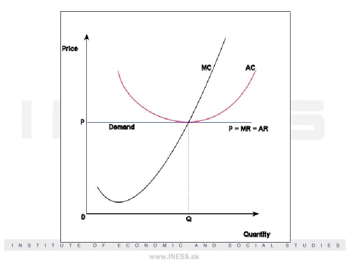 Podmienky dokonalej konkurencie • veľké množstvo nezávislých subjektov • homogénne produkty • žiadny subjekt nemôže mať možnosť ovplyvniť svojím konaním cenu produktu • stav dokonalej a symetrickej informovanosti, všetci disponujú všetkými relevantnými informáciami • neexistujú bariéry vstupu na trh