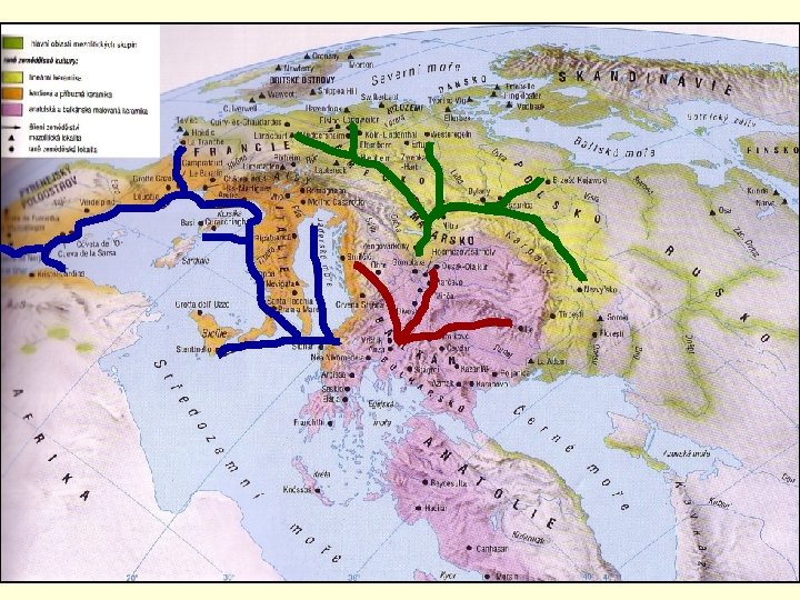 periodizace • protoneolit – do počátku 6 tis. – jen na Balkáně (Thesálie, Srbsko, Rumunsko) – Lepenski Vir – Karanovo, Sesklo, Dimini • starý neolit – 5700 – 5100 – kultura s lineární keramikou (Ln. K) – východoslovenská lineární keramika • střední neolit – 5100 - 4800 – – šárecký stupeň Ln. K vypíchaná keramika bukovohorská želiezovská • mladý neolit – 4800 - 4200 – lengyelský kulturní okruh • lužianská skupina • kultura s moravskou malovanou keramikou (MMK) • ludanická, balatonská, jordanowská, bisamberská