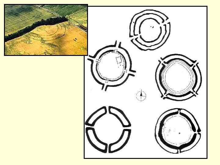 rondely • hluboký příkop, 4 vstupy, uvnitř skoro nic • astronomická, společenská, obranná funkce • Bulhary, Němčičky, Vedrovice, Křepice, Těšetice – Kyjovice, Rašovice, Hornsburg, Bučany, Svodín, Lochenice, Friebritz