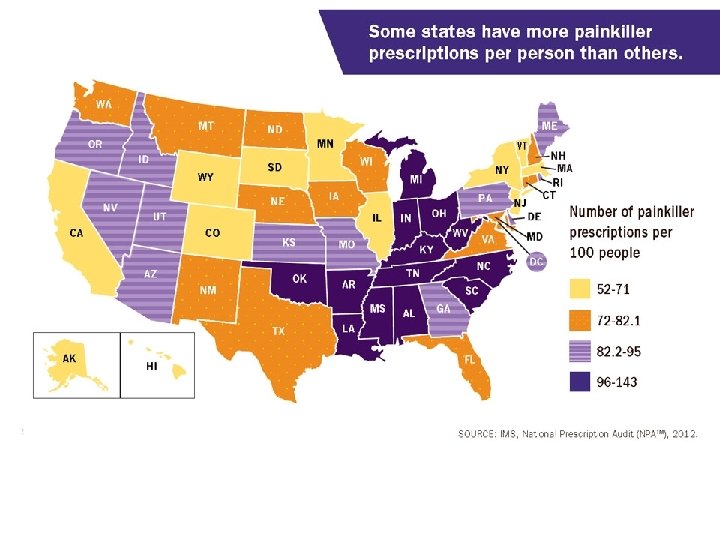 Opioid Prescriptions n Opioid pain relievers and benzodiazepine sedatives are commonly prescribed in the United States. n Overprescribing of opioid pain relievers can result in multiple adverse health outcomes. n Wide variation exists from one state to another n Need for state monitoring of prescribing patterns