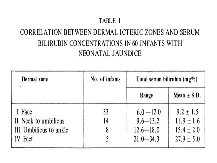 Cont. . • In accurate rules of thumb have been applied to the physical exam of the jaundiced infant. Some include estimation of serum bilirubin based on appearance. • One such rule of thumb includes infants whose jaundice is restricted to the face and part of the trunk above the umbilicus, have the bilirubin less than 12 mg/d. L (less dangerous level). • Infants whose palms and soles are yellow, have serum bilirubin level over 15 mg/d. L (more serious level). • In infants jaundice can be measured using invasive or non-invasive methods. • In non invasive method Ingram icterometer and Transcutaneous bilirubinometer are used.