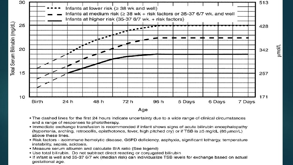 N J - Clinical assessment of jaundice 1 1 Area of body mg/dl Bilirubin levels Face Upper trunk Lower trunk & thighs Arms and lower legs Palms & soles 4 -8 5 -12 8 -16 11 -18 > 15 Teaching Aids:
