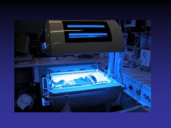 Treatment • Goals – Prevention of kernicterus – Maintenance of hydration and nutrition • Interventions – Intensive Phototherapy – Exchange transfusion