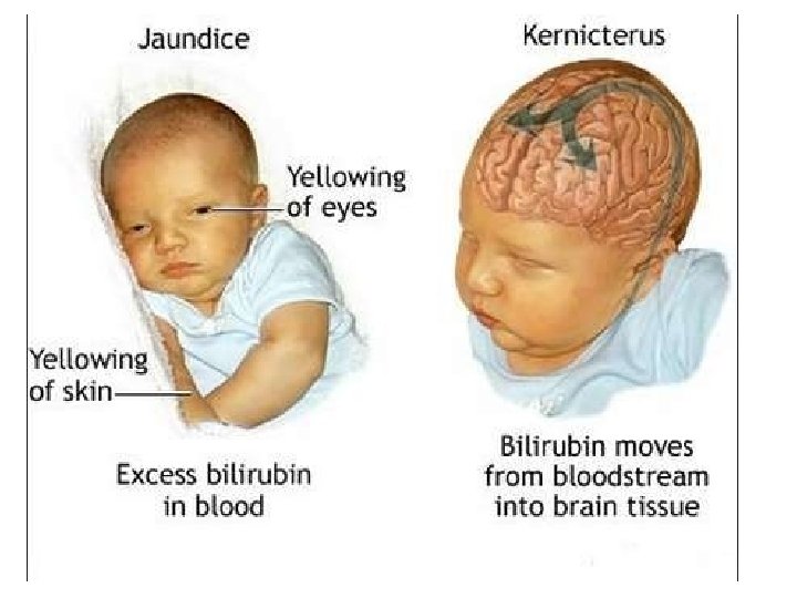 Risk factors for jaundice • J- jaundice within first 24 hrs of life or premature • A - a sibling who was jaundiced as neonate • U - unrecognized hemolysis (ABO) • N nursing – non-optimal sucking/nursing • D - deficiency of G 6 PD , DRUGS, Ceftriaxone, • I - infection • C – Cephalhematoma /bruising • E- East Asian/North Indian