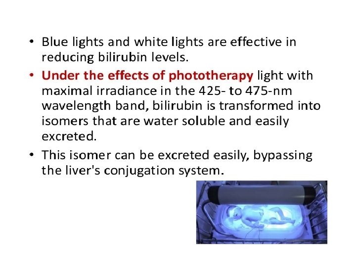 Side effects of phototherapy • • • Increased insensible water loss Loose stools Skin rash Bronze baby syndrome Hyperthermia May result in hypocalcemia