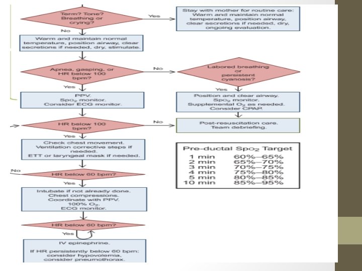 Initial steps in resuscitation: Assess for: • Term gestation • Breathing and crying • Good muscle tone • Pink color • Non meconium stained