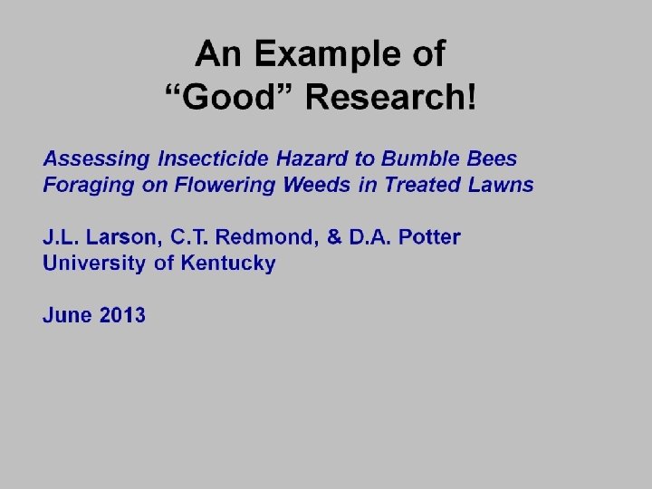 Urban Landscape Entomologist’s View • Bees are PART of the ecosystem! • “Bees” includes much more than just honey bees! • Urban landscapes provide food, water and habitat to pollinators, other beneficials and pests. • Yes, herbicides, insecticides and fungicides, rodenticides, etc. , are TOXIC and can kill non-targets!