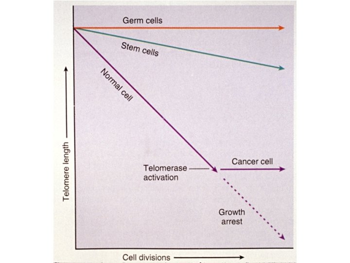 Limitless Replication • Normal human cells: only 60 -70 doublings • Telomeres keep getting shorter… • …leading to cell cycle arrest (via p 53 and RB). • Stem cells and cancer cells use telomerase to maintain telomere length and keep replicating.