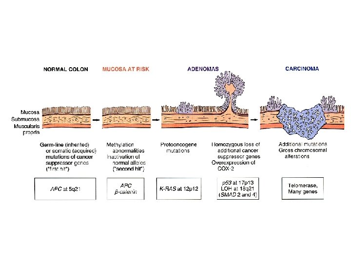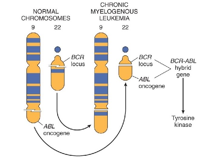 Chromosomal Changes • Genetic damage can be subtle, invisible on a karyotype (point mutation) • …or obvious, visible on a karyotype • Some karyotypic abnormalities occur predictably in certain tumors (leukemias, lymphomas, solid tumors)