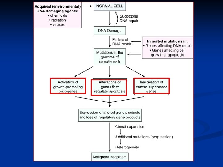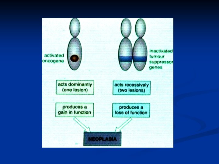 Molecular Basis of multistep Carcinogenesis Cancer results from accumulation of multiple mutations n All cancers have multiple genetic alterations, involving activation of several oncogenes and loss of two or more tumor suppressor genes n
