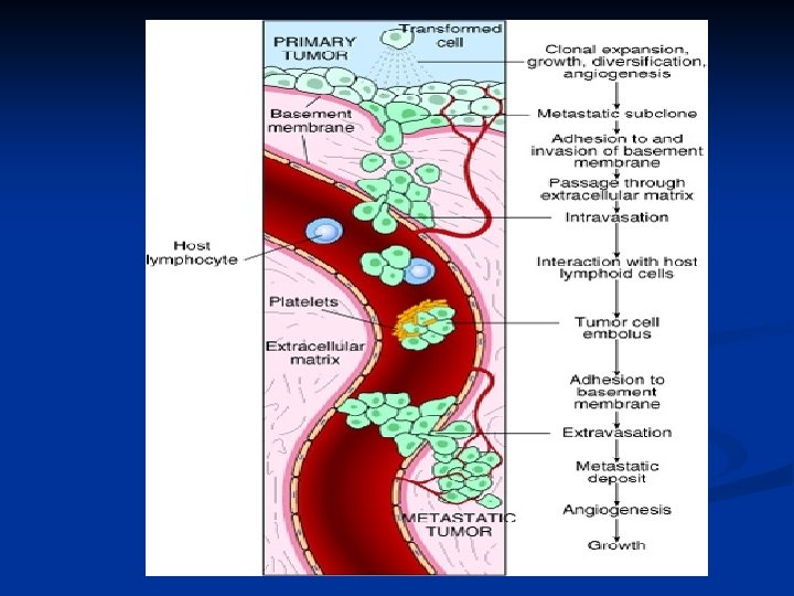 Carcinogenesis n Ability to invade and metastsize: n Two phases : n Invasion of extracellular matrix n Vascular dissimenation and homing of tumor cells