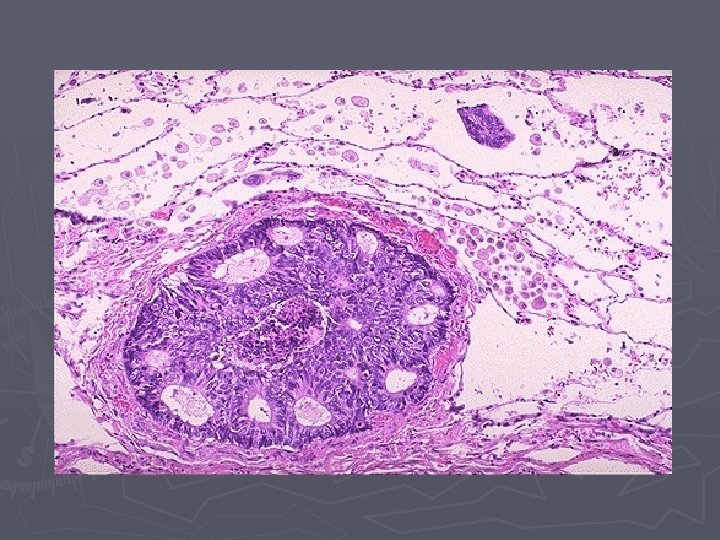 DISEMINACION LINFATICA ► Vía más común de diseminación de los carcinomas. ► Patrón de afectación sigue vías naturales de drenaje. Ca de mama: Ganglios axilares. Ca de pulmón: Ganglios traqueobronquiales perihiliares y mediastínicos.