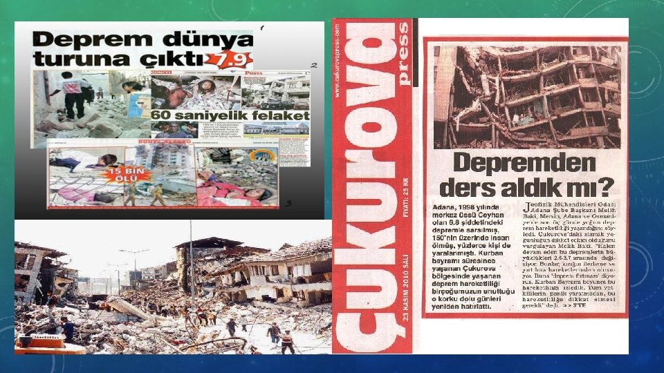 DEPREM • DEPREMLERİN ZARARLARINI ARTTIRAN İNSAN FAALİYETLERİ • Sağlam olmayan zeminler üzerine bina inşa edilmesi • Binalar yapılırken deprem yönetmeliğinın uygulanmaması • Deprem bilincinin oluşmaması • Depremden önce gerekli tedbirlerin alınmaması • Sağlam yapı malzemeleri kullanılmaması Peki sizce depremin zararlarını azaltmak için neler yapılmalıdır ?