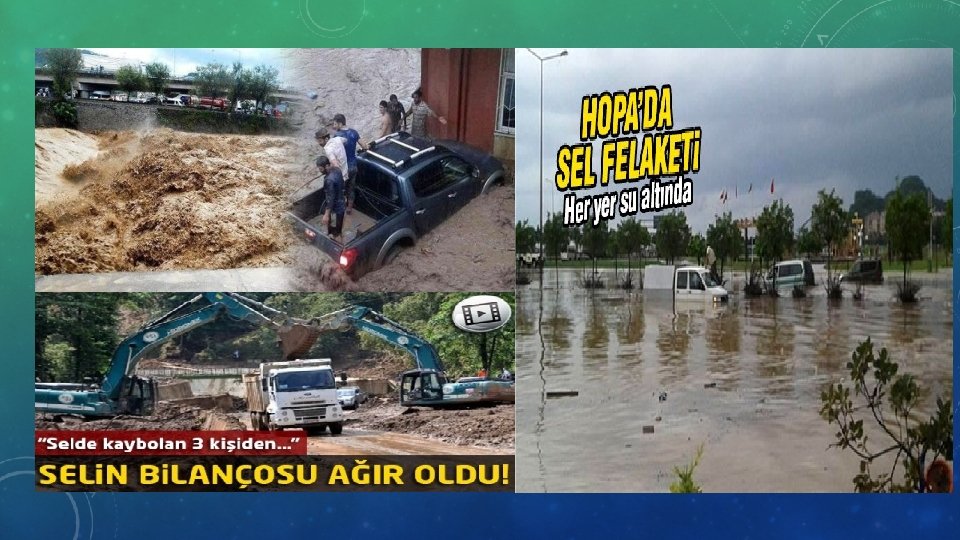 SEL VE TAŞKINLAR • SEL VE TAŞKINLARIN ZARARLARINI ARTTIRAN İNSAN FAALİYETLERİ • İnsanların akarsu boylarına yerleşmesi • Doğal bitki örtüsünün tahribatı • Yol yapımı • Akarsu taşkın kontrol sistemlerinin yapılmaması • Afet yönetimi konusunda yetersizlikler Sizce sel felaketinin zararlarını azaltmak için neler yapılmalıdır ?