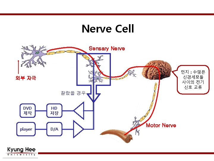 The Active Potential Vo 20 Membrane conductance (membrane permeability) 0 -20 -40 VTH ; Threshold Voltage 약간 VTH이상으로 올려주면 -60 Na, K의 conductance가 커져서 Depol. Repol. 됨 Abstract Refractory Period 자극이 새로 들어와도 무시 Relative Refractory Period 전의 크기보다 더 큰 자극이 와야 반응. 같은 신호가 짧은 시간에 오면 Saturation