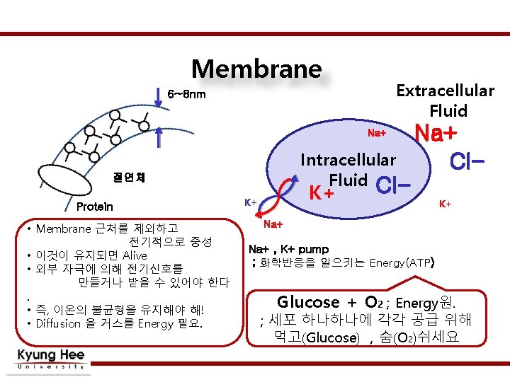 Semi-permeable Membrane Semi-persmeable Membrane (Only to Na+) Na+ Cl중성 Na+ Cl- 중성 Dynamic Equilibrium