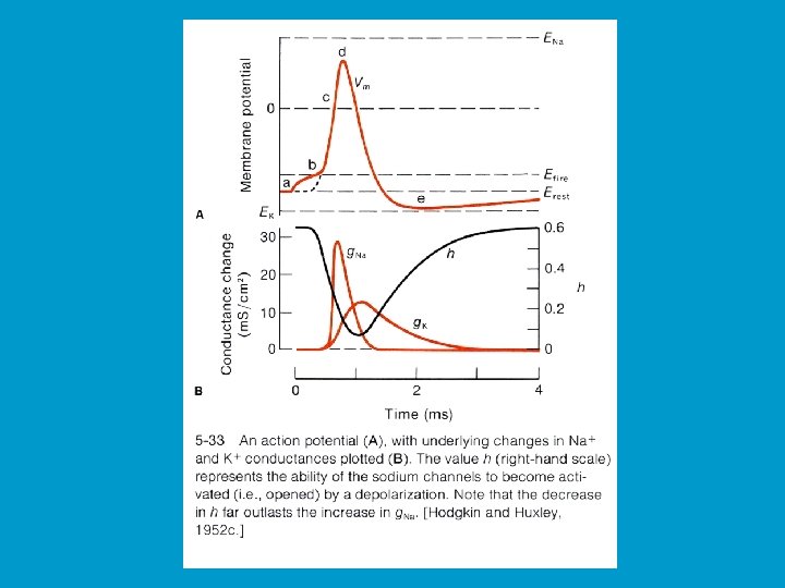 Voltage-gated Na+ channels n n These channels have two voltage sensitive gates. At resting Em, one gate is closed and the other is open. When the membrane becomes depolarized enough, the second gate will open. After a short time, the second gate will then shut.