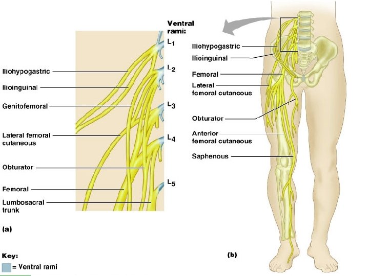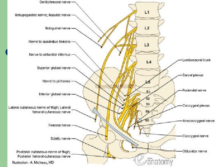 l The lumbar plexus is formed by the anterior rami of spinal nerves L 1 to L 3 and part of L 4. l The rest of the anterior ramus of L 4 and the anterior ramus of L 5 combine to form the lumbosacral trunk, l The lumbosacral trunk joins with the anterior rami of S 1 to S 3 and part of S 4 to form the sacral plexus.