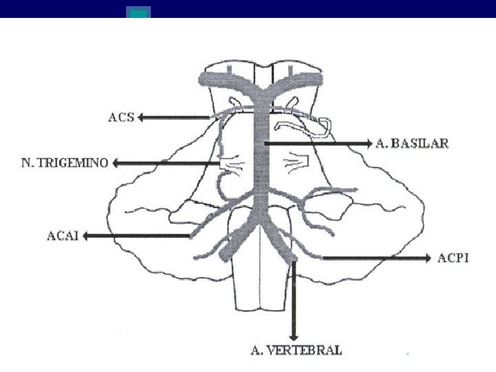 n La cara inferior esta cruzada por la raíz motora del trigémino y corresponde a la fosita del ganglio de gasser. n EL borde posterointerno cóncavo esta en continuidad con la raíz sensitiva del trigémino. n El borde anteroexterno convexo da origen a las tres ramas del trigémino: n Oftálmica Maxilar superior Maxilar inferior n n