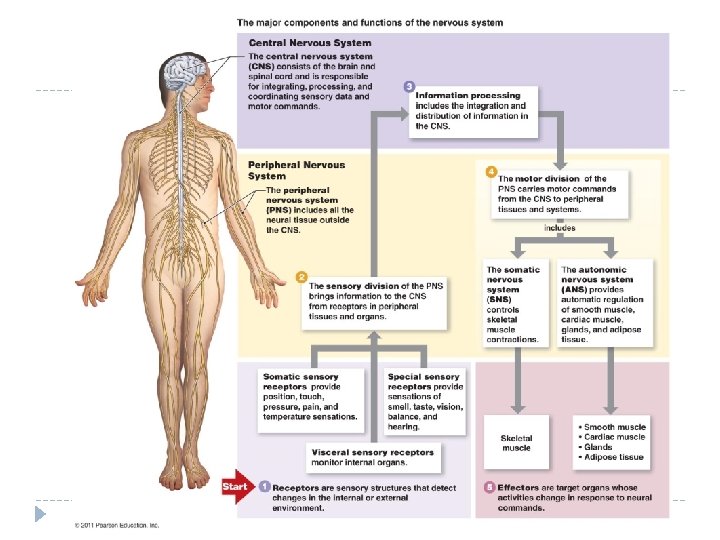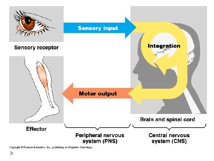 Basic Tasks of the Nervous System � Sensory Input: Monitor both external and internal environments. � Integration: Process the information and often integrate it with stored information. � Motor output: If necessary, signal effector organs to make an appropriate response.