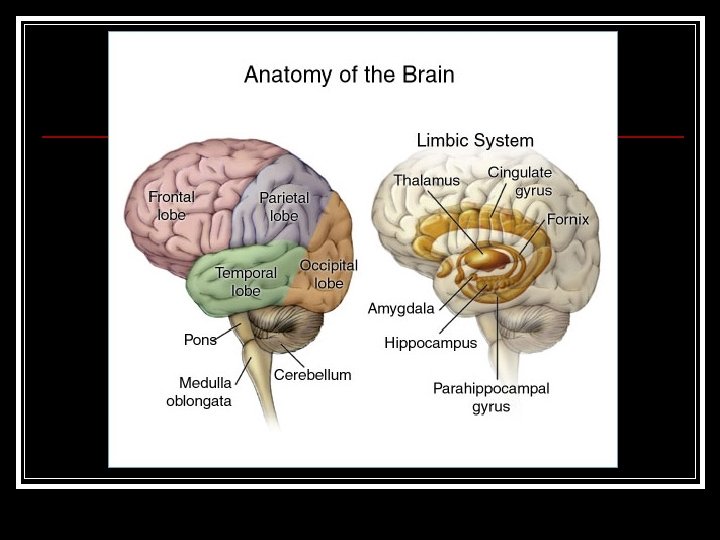 Brain n Neural Systems n Brain circuits responsible for brain function n n E. g. , - vision, hearing, movement, reward System could be § Localized (vision) or diffuse (arousal) § General (vision) or specific (color vision) n Broad Divisions n n n Sensory Motor Association