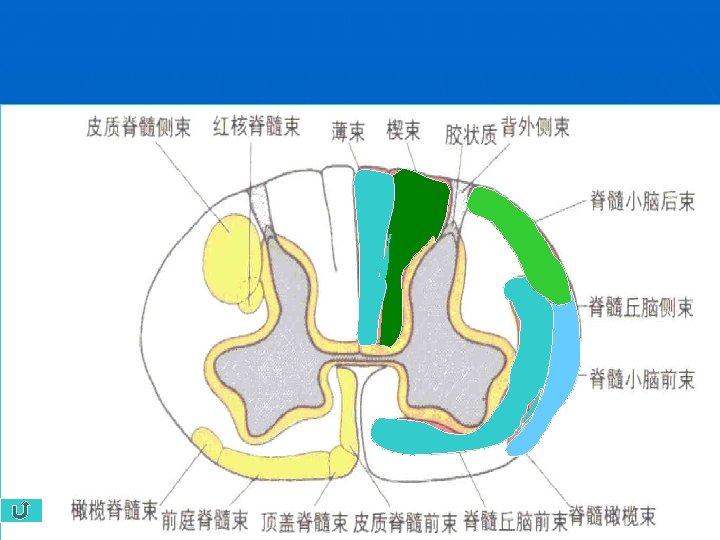 dscending tracts 下行传导束 Lateral Corticospinal Anterior corticospinal Function: control somatic voluntary movement