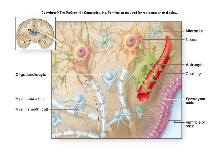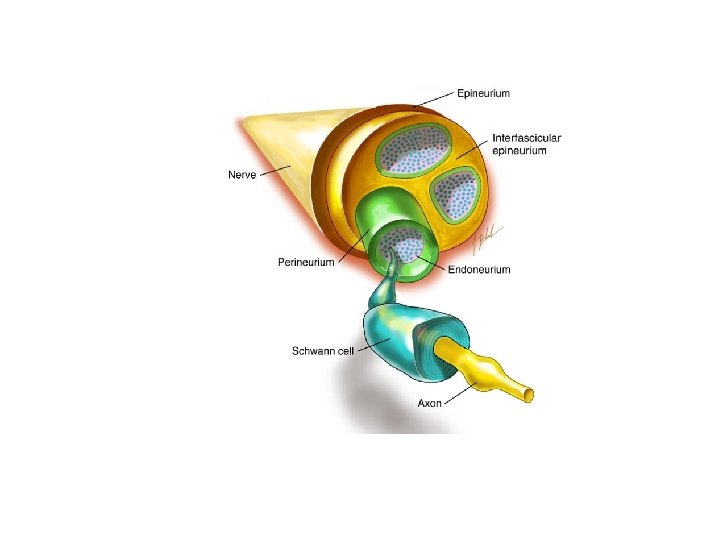 Myelin Sheath • Insulating layer around a nerve fiber • 20% protein & 80 % lipid (looks white) • In PNS, hundreds of layers wrap axon – the outermost coil is schwann cell (neurilemma) • In CNS, no neurilemma • Nodes of Ranvier – Gaps between myelin segments • Initial segment (area before 1 st schwann cell) & axon hillock form trigger zone where signals begin