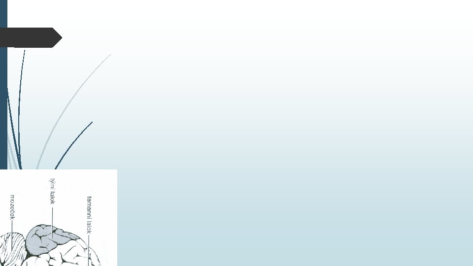 Funkční korové oblasti Čelní lalok Primární motorická oblast – řídí úmyslné pohyby (pyramidové buňky – pyramidová a extrapyramidová dráha) Premotorická oblast – před centrálním závitem, významná při přípravě a realizaci složitého pohybu nebo pohybu se zrakovou kontrolou Brocovo centrum řeči – před základní motorickou oblastí, řídí pohyby svalů při mluvení Frontální asociační oblast – účastní se řešení problémů, vzniku pozornosti a chování