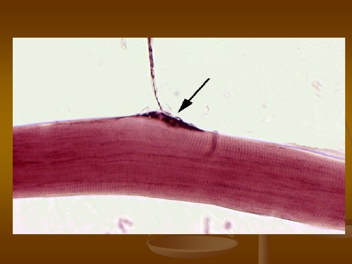 Motorické ploténky v motorické jednotce Tato svalová vlákna s kontrahují současně telodendrie Sval. vřeténko Kosterní sval. vlákno Každé sval. vlákno (rhabdomyocyt) má jen jednu motorickou ploténku. Motorická ploténka