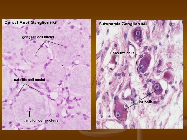 Gangliové buňky = pseudounipolární neurony + satelitní bb