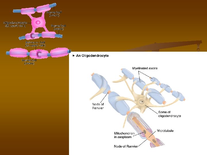 obaly - myelinová pochva - Schwannova pochva (v PNS) - oligodendrocyty (v CNS)