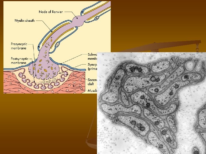 Synapse n n n pro převod vzruchu mezi 2 neurony nebo neuronem a efektorovou b. , chemická nebo elektrická synapse, úseky synapse: 1) presynaptické zakončení 2) synaptická štěrbina 3) postsynaptická membrána