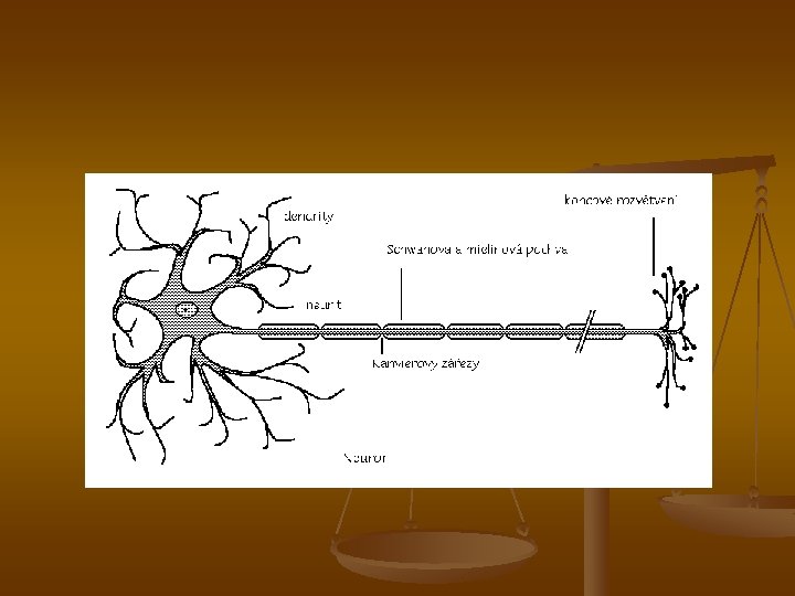 Další dělení neuronů (podle …) délky axonu: Golgi typ I (dlouhý axon) – až 1 m Golgi typ II (krátký axon) – několik cm n funkce: senzitivní (aferentní) – vede vzruchy z receptorů do CNS motorický (eferentní) – z CNS k efektorům interneuron – mezi sensitivním a motorickým neuronem (97 % všech neuronů) n