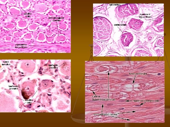 1 1, 2 – multipolár. neurony: Nisslova tělíska 3 – pseudounipolár. neurony: lipofuscin 2 3